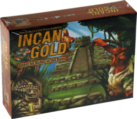 In Incan Gold you and your fellow players are adventures seeking out rumored treasure among ancient ruins. Within lay bountiful precious metals and ancient artifacts begging to be found. But beware, there are also perils awaiting those foolish enough to continue deeper into the ruins instead of turning back.