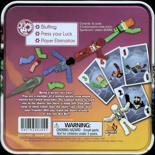 There be sharks in them there waters! Get Bit! is a fun, fast paced bluffing game. I believe it's what many gamers would refer to as a Filler Game, a game played in between the more lengthy, meatier games available. They probably take roughly 15 minutes if no one is learning, depending on the number of players.